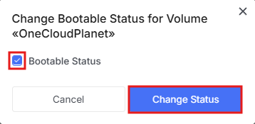 You can change the boot status of a volume if the metadata was set incorrectly or if the volume with an operating system needs to be marked as a system volume for later use when creating a VM.