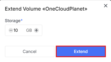 - In the new window, set the required volume size and click Extend