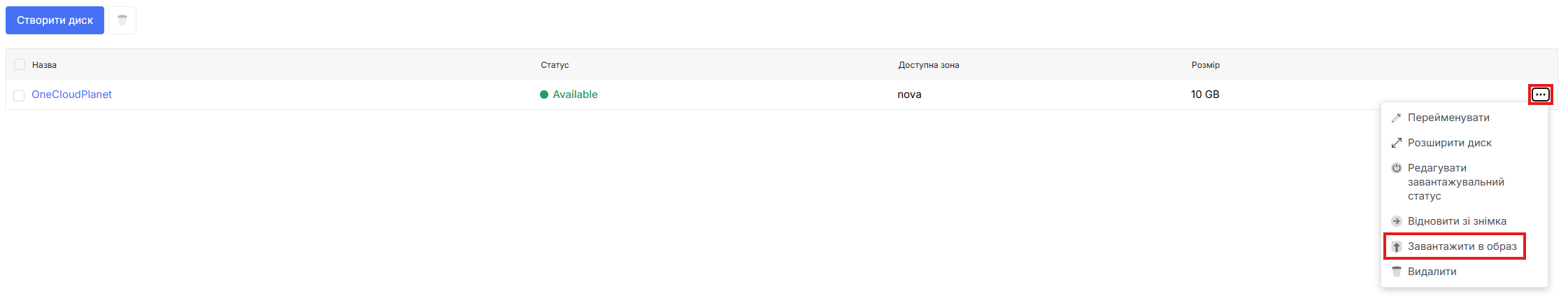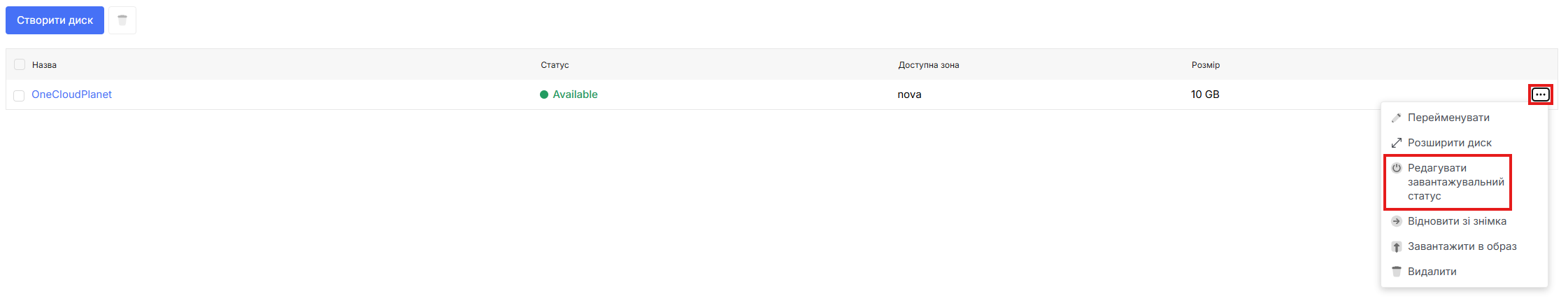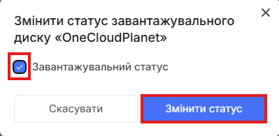 Ви можете змінити завантажувальний статус диску, якщо метадані було встановлено некоректно або якщо диск з операційною системою потрібно позначити як системний для подальшого використання при створенні VM.