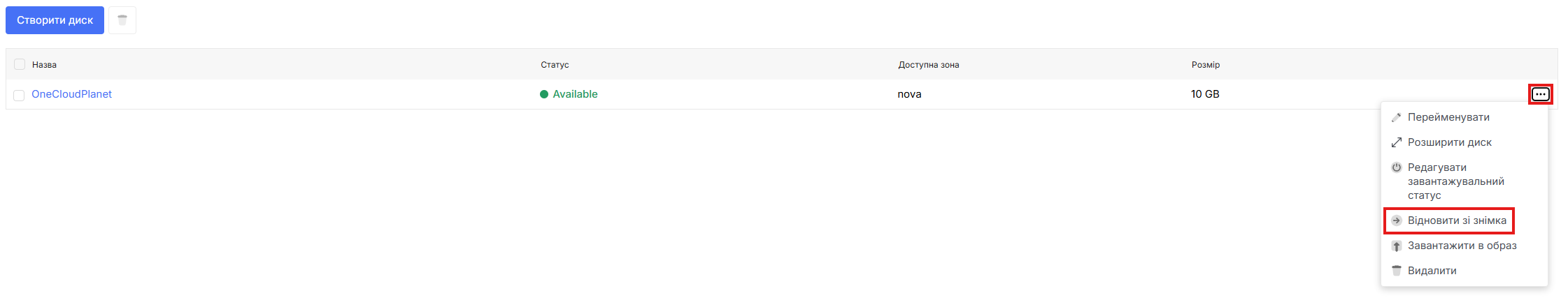 Перед тим як відновлювати диск зі знімку необхідно створити знімок