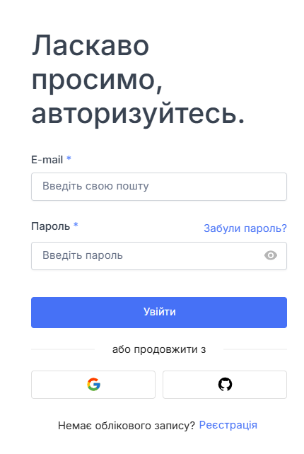 - Введіть адресу електронної пошти, яку ви використовували під час реєстрації.