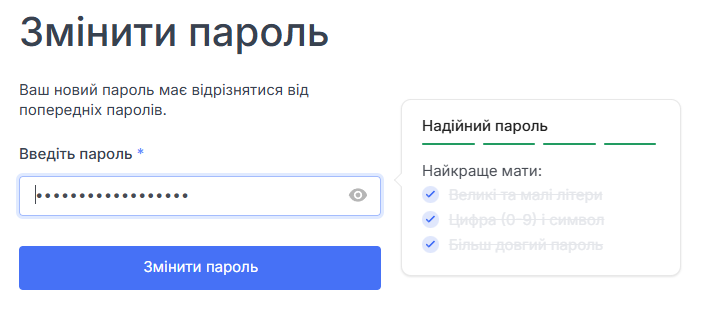 На сторінці скидання пароля введіть новий пароль і підтвердьте його.